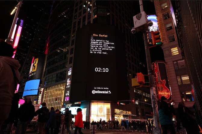 Nueva York, 22 de diciembre del 2025.– En una acción inédita y profundamente simbólica, Continental apagó durante cinco minutos una de las pantallas gigantes de Times Square, uno de los espacios más luminosos y estimulantes del mundo. En su lugar, solo una cuenta regresiva y un mensaje silencioso invitaron a reflexionar sobre la importancia de recuperar una presencia más activa en la vida offline, especialmente en el cierre del año.